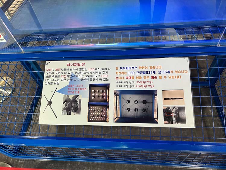발명의 진화 입구에는 하이퍼비전을 볼 수 있다. 생소한 이름의 하이퍼비전은 모터가 회전하면서 로터에 결합된 LED에서 빛이 나 영상이 공중에 떠 있는 것처럼 보이게 해주는 장치이다. 빠른 속도로 회전하면서 로터는 보이지 않고 LED에서 나오는 빛만 우리 눈에 보여 영상이 공중에 떠 있는 것처럼 보인다.