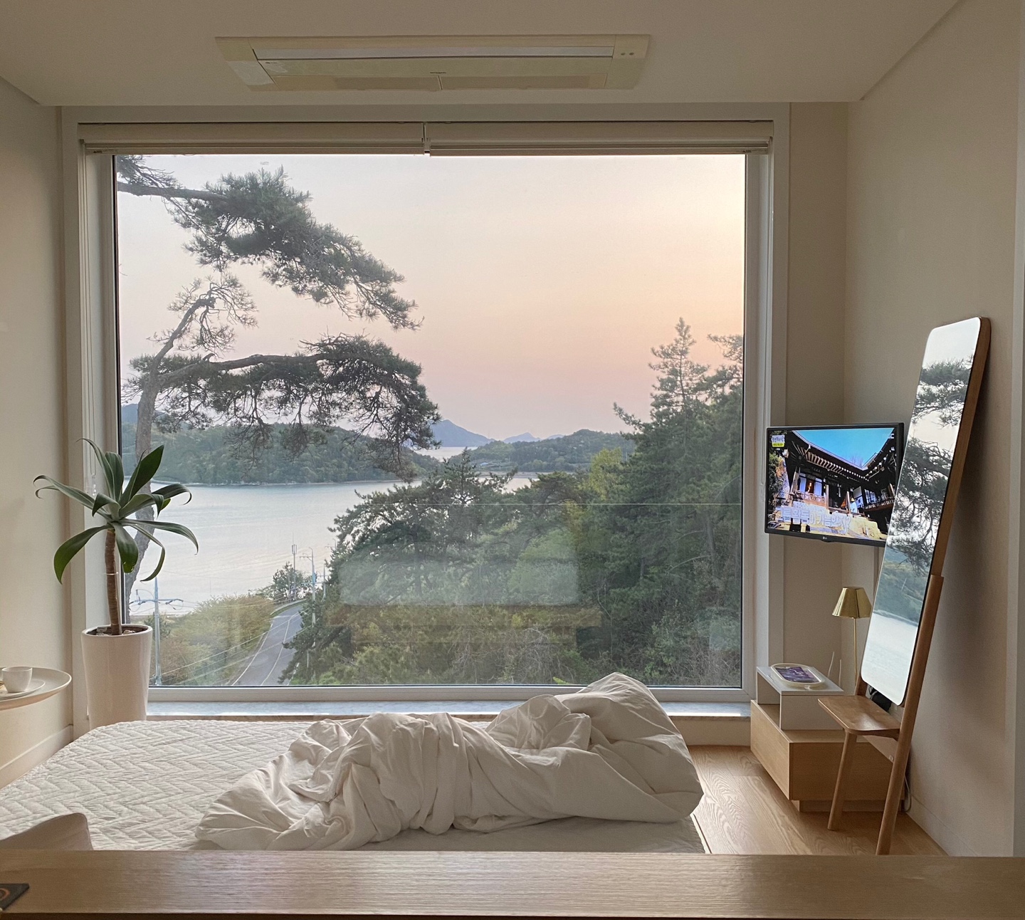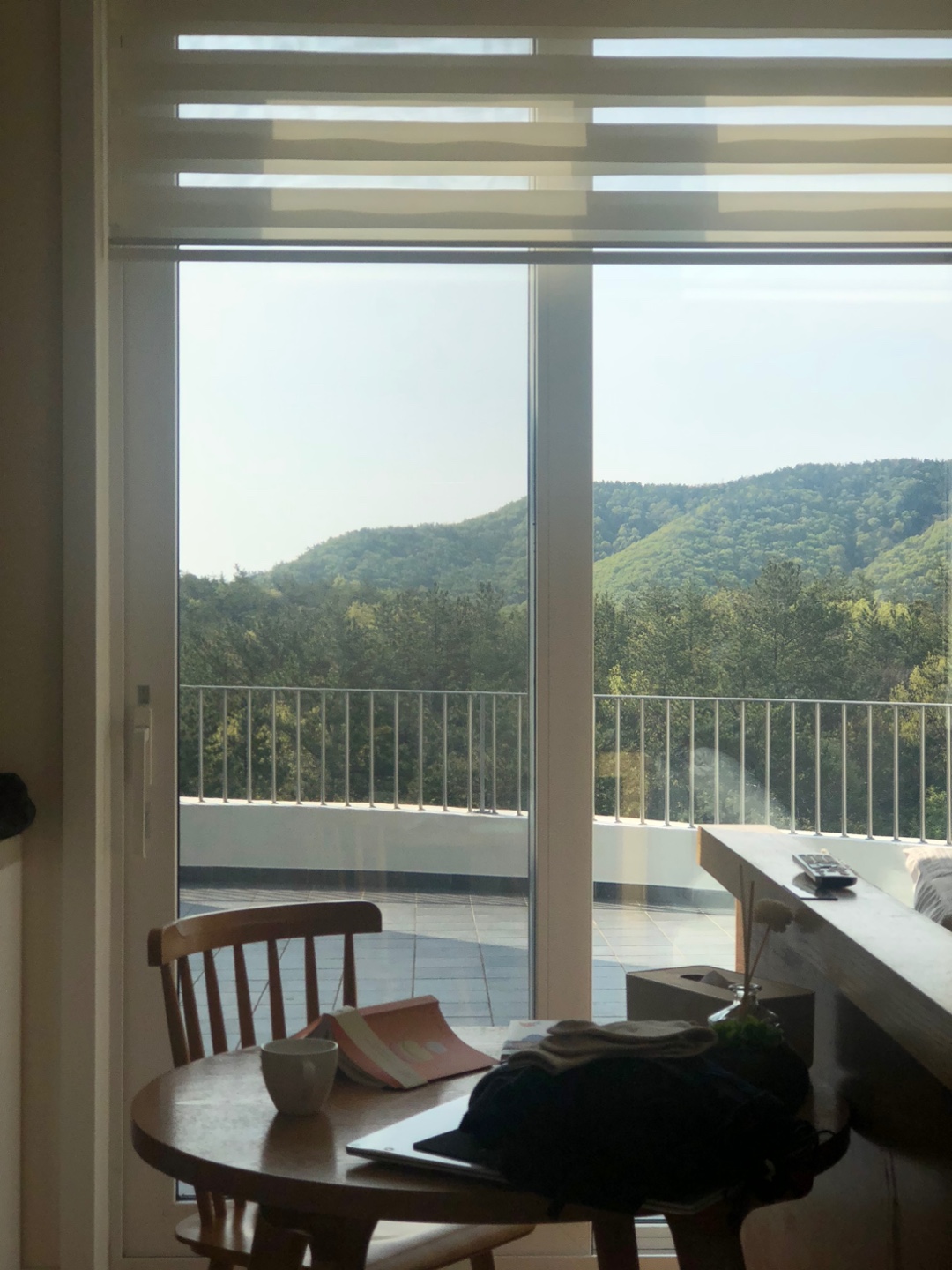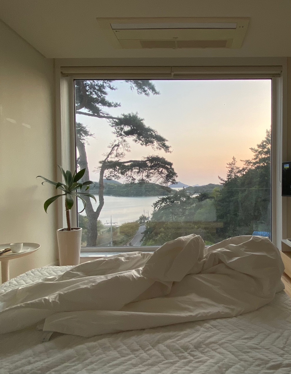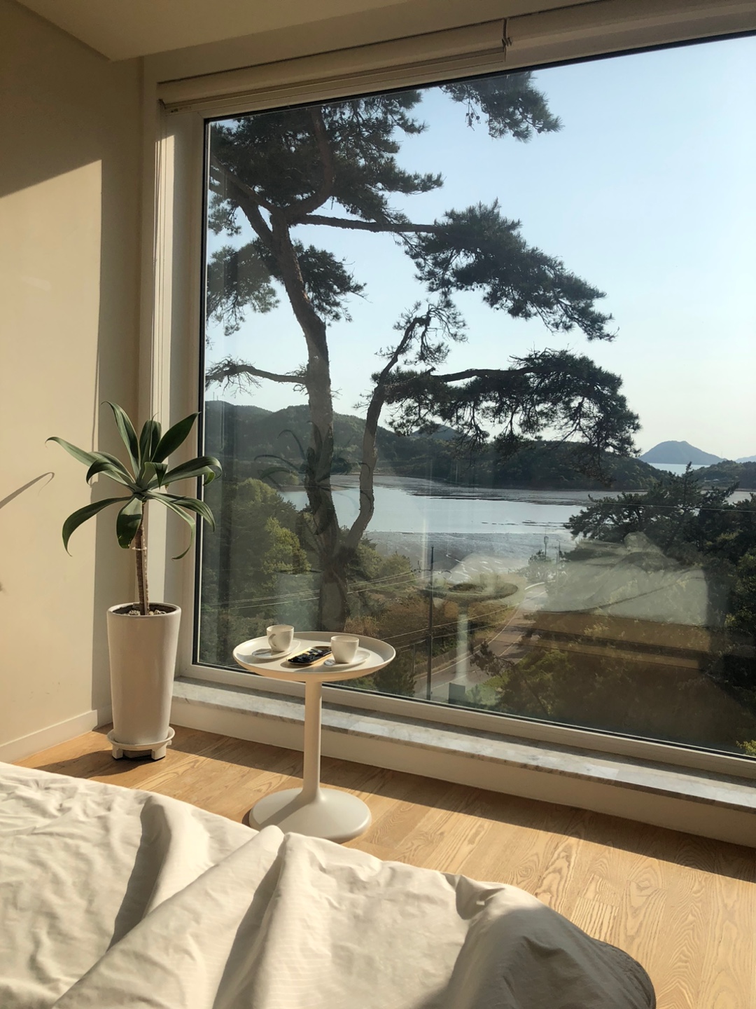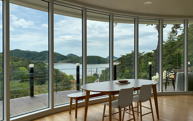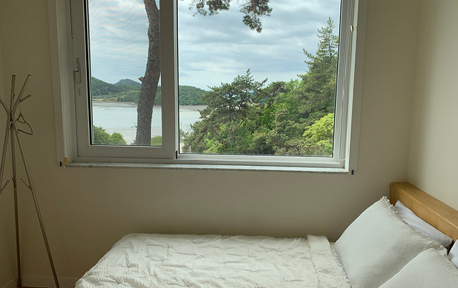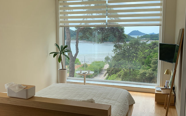 고흥 여행 목적은 아무것도 하지 않고 조용히 휴식, 힐링하는 것이었습니다. 벽면전체가 유리로 되어 있는 커다란 통창에 앉아 바깥 풍경을 바라보면서 대부분의 시간을 보냈던 것 같습니다.