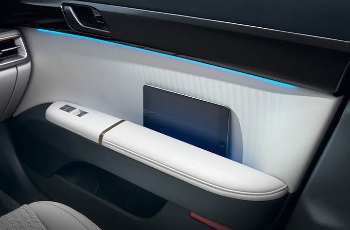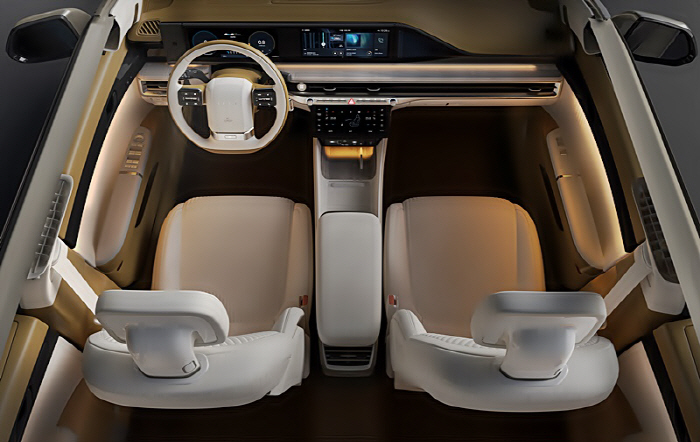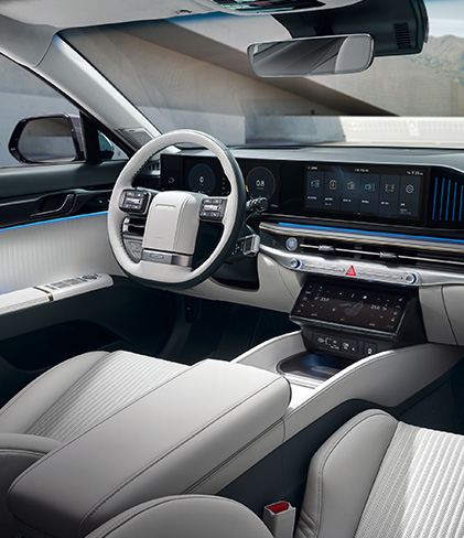 실내는 전면 12.3인치 대화면 클러스터와 내비게이션을 일체형으로 통합한 디스플레이를 적용했다. 중앙 하단 풀터치 10.25인치 대화면 통합 공조 콘트롤러와 조화를 이룬다. 스티어링 휠로 이동한 컬럼타입 전자식 변속 레버는 조작 방향과 구동 방향을 일치시켜 직관적 조직이 가능하다