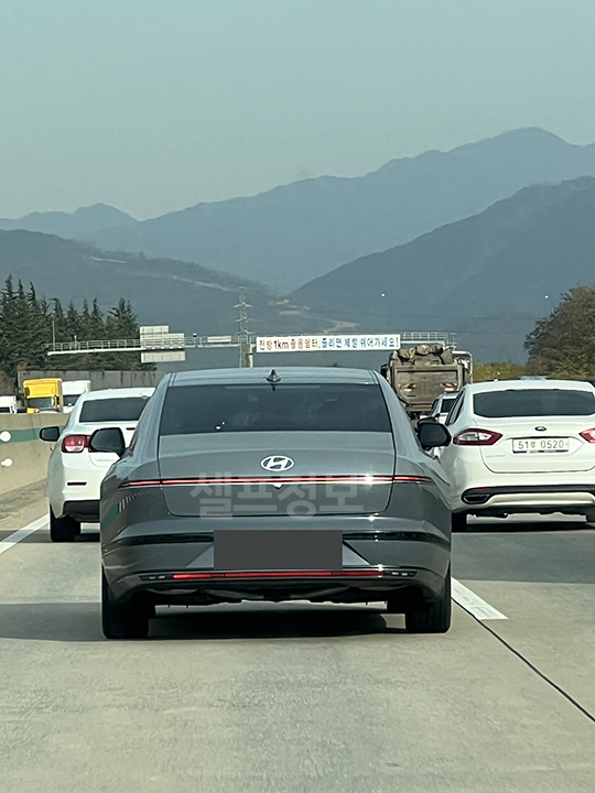 12월에나 도로에서 볼 수 있을 거라 생각했던 7세대 디 올 뉴 그랜저를 몇일 전 고속도로에서 우연히 목격했어요. 신기해서 급하게 사진을 찍긴했는데 아쉽게도 뒷모습 뿐이네요.