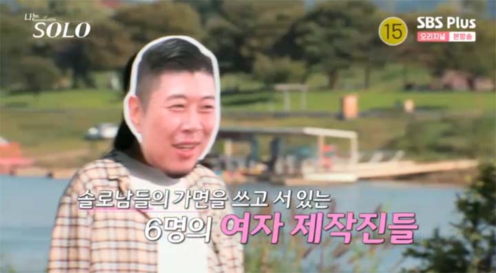 사실은 솔로남들의 가면을 쓰고 서 있는 6명의 여자 제작진들을 포옹하는 것이었다.