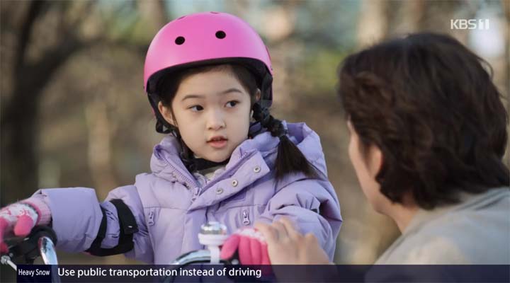 미리내는 이영이의 핸드폰으로 장경준에게 전화를 걸어 '자전거 탈 줄 아냐'며 '다른 친구들은 아빠들이 자전거를 가르쳐 준다'며 말한다.