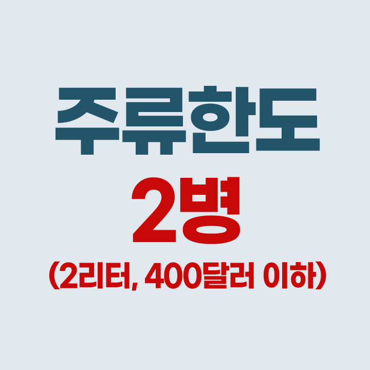 술은 1병(1리터, 400달러 이하)에서 2병(2리터, 400달러 이하)로 상향