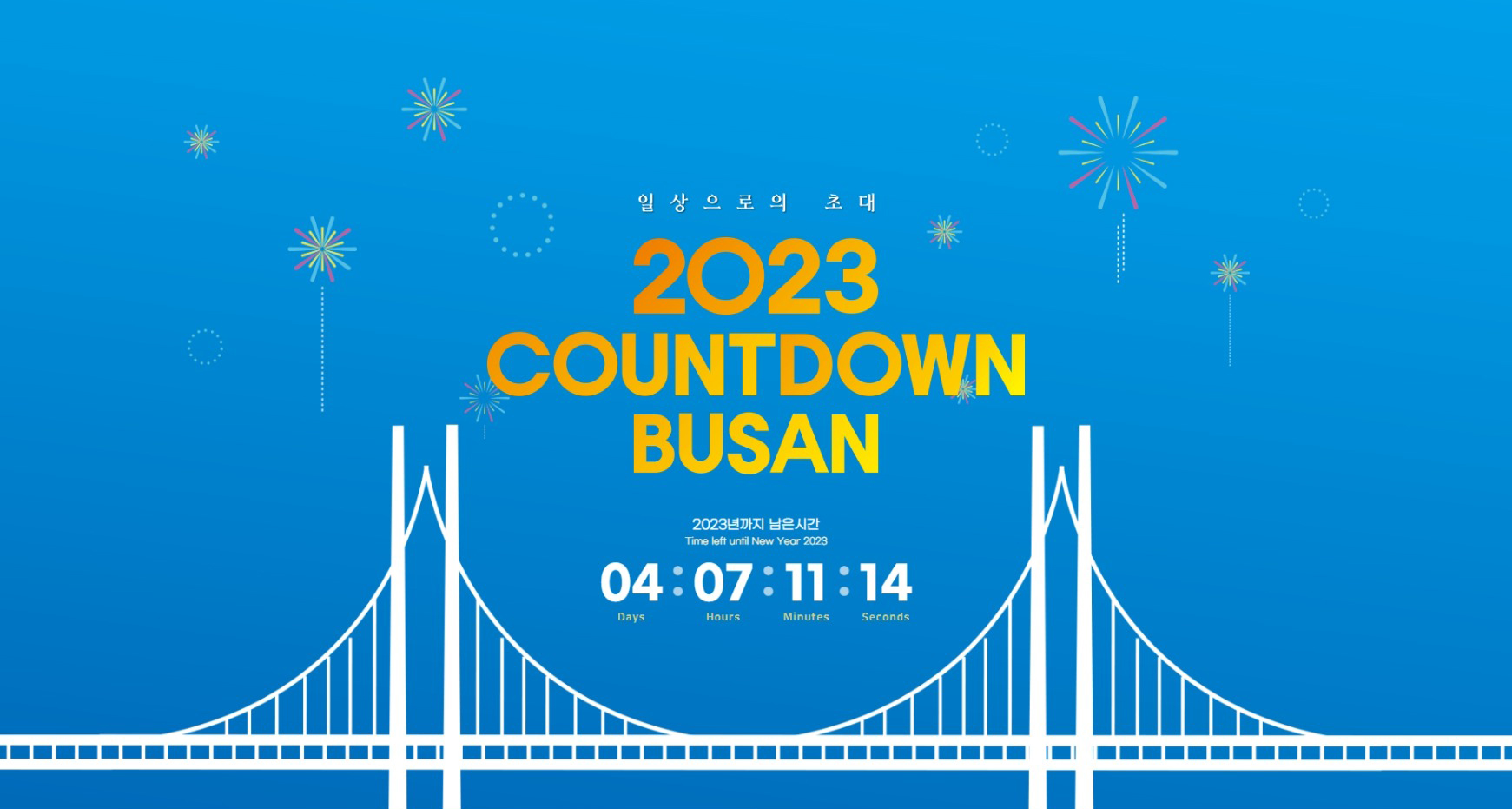 '2023 카운트다운부산'은 부산 광안리해변에서 시민들과 함께 한해를 마무리하는 행사입니다. 각종 이벤트와 초대가수들의 공연이 준비되어 있다니 놓치지 말아야겠습니다.