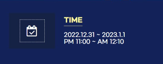 행사날짜 : 2022년 12월 31일(토) 부터 2023년 1월 1일(일)