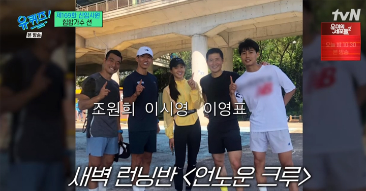 션은 새벽마다 함께 뛰는 러닝크루로 박보검, 임시완, 조원희, 이시영 이영표, 윤세아를 공개했다.