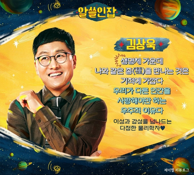과학을 사랑하는 물리학자 김상욱은 과학자의 시선으로 인간사를 바라보며 이성과 감성을 넘나드는 지식을 알쓸인잡에서 보여줄예정이다.