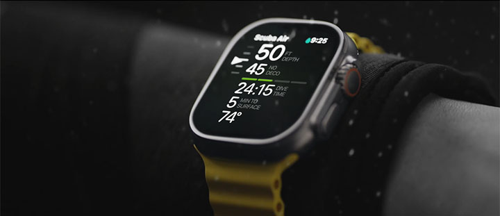 | 센서 | · 수심 게이지 ±1m 정확도 · 수온 감지 센서 · 손목 온도 감지 · 혈중 산소 센서 및 앱 · 3세대 광학 심박 센서 · 고심박수 및 저심박수 알림 · 나침반 · 상시감지형 고도계 |
