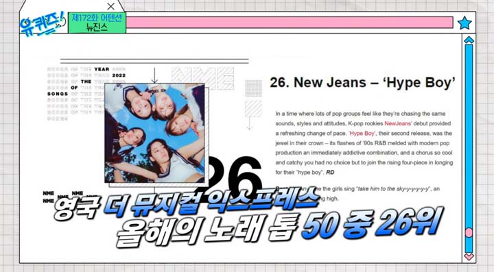 ● 뉴진스 Hype BOY 영국 더 뮤지컬 익스프레스 올해의 노래 톱 50 중 26위