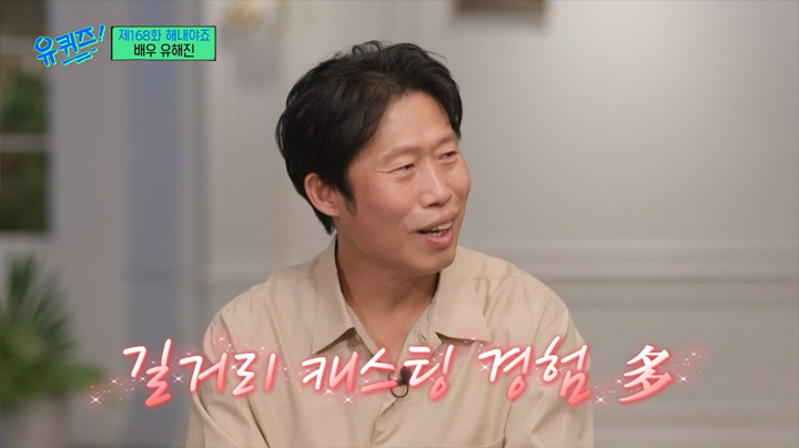 168화 유퀴즈(유 퀴즈 온 더 블럭)에는 25년차 배우 유해진이 출연했다. 25년 동안 60편의 영화에 출연한 유해진은 도박꾼, 킬러, 광대, 악역, 택시운전사, 로봇까지 어떤 역할이든 해내는 배우이다.