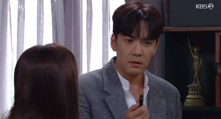 회사에서 쫓겨나더니 정신차린 것 같은 강바다의 모습에 강백산은 녹음 만년필을 꺼내 그 말을 녹음하라고 말한다.