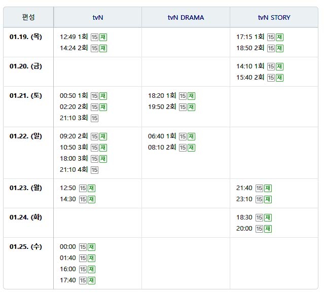 오늘 기준으로 재방송일정을 첨부해드립니다.