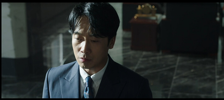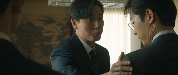 제막식 행사에 참석하기 위해 순양그룹에 도착한 진영기 회장에게 아들 진성준(김남희 배우)이 화를 내며 찾아온다.