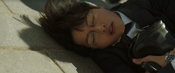 불안한 윤현우는 자신을 따라오는 차를 발견하고, 괴한들의 추격에 도망치기 시작한다. 총성까지 이어진 추격에서 필사적으로 도망친 윤현우는 사람들이 많은 광장으로 뛰쳐나왔지만 한 아이와 부딪치고 쓰러지고 만다.