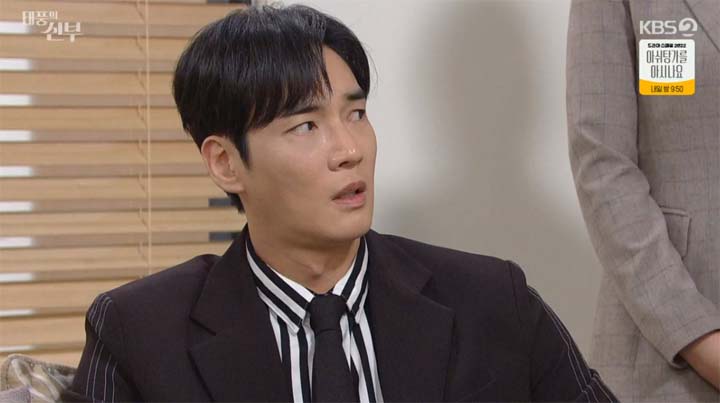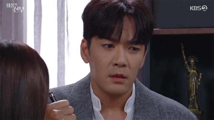 태풍의 신부 43회에서는 윤산들의 아버지가 돌아가신 날, 돌아가신 장소에서 발견된 만년필의 존재를 몰래 듣던 강바람의 모습이 등장한다.