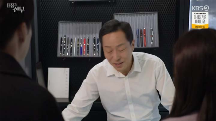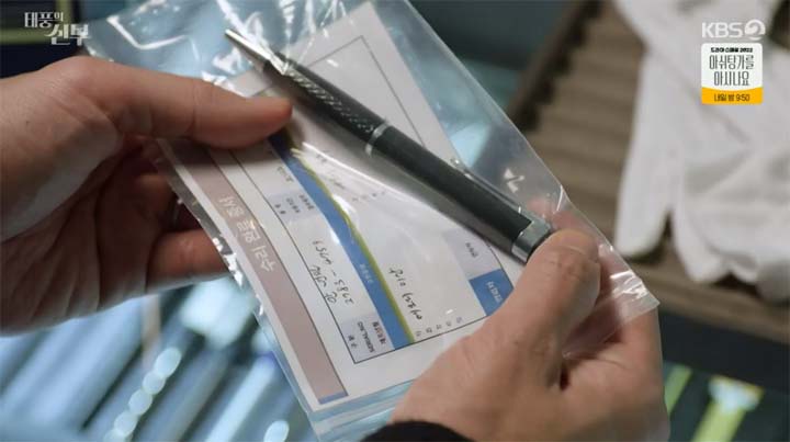 은서연은 강백산에게 만년필을 언제부터 썼냐고 묻고, 강백산은 그걸 왜 묻냐며 예민한 모습을 보인다.