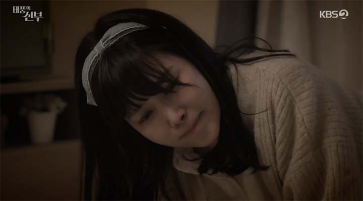 12월 20일(화) 7시 50분에 방송된 태풍의 신부에서 정모연은 청송병원을 찾아가 기억을 잃고 헤매던 사람이 자신이었던 것을 떠올리고 눈물을 흘린다
