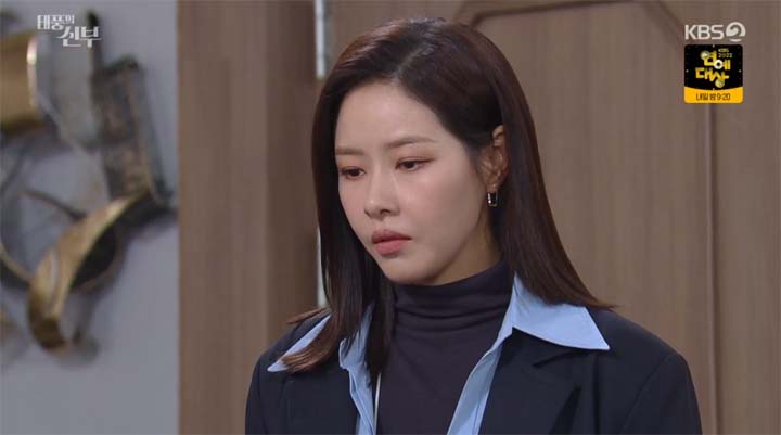 은서연은 윤산들의 죽음에 강태풍이 아무 죄가 없다는 걸 알지만 태풍을 보는 것에 힘들어한다.