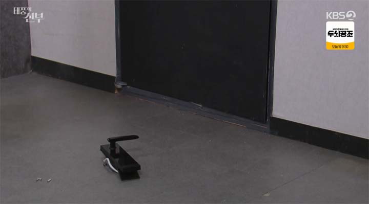 당황한 강바다는 문앞을 가로 막고, 방 안의 윤산들은 손잡이를 붙잡고 눈물을 흘렸다.