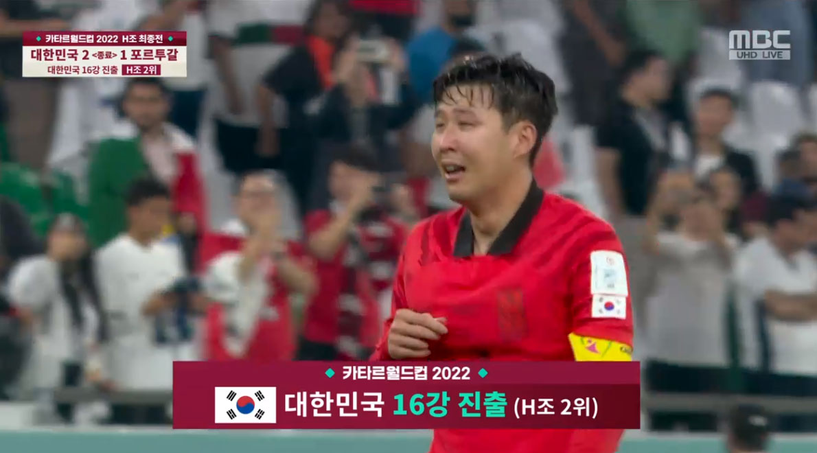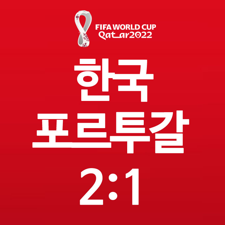 오늘 한국과 포르투갈의 경기에서 1-1로 맞서다 후반 손흥민의 패스를 받은 황희찬이 결승골을 터뜨리며 2-1로 한국이 16강 티켓을 차지했다.