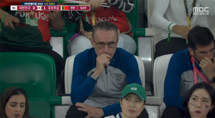 벤투 감독은 지난 가나전에서 퇴장당해 관중석에서 경기를 지켜봤다