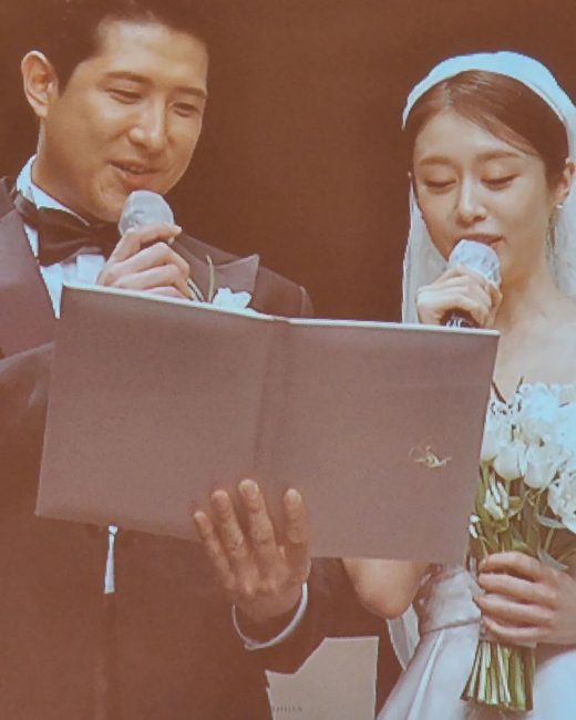 결혼식장에서 지연과 황재균은 서약서를 함께 읽었다.
