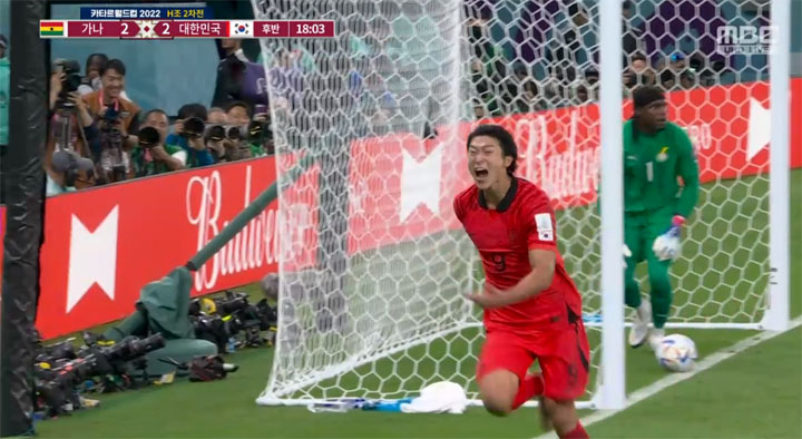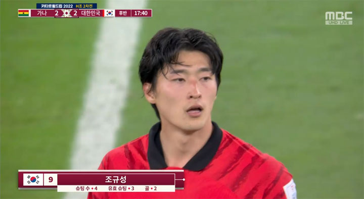후반전에서 한골이라도 터지는 것이 중요했던 한국은 이강인이 투입되자 마자 조규성의 헤딩으로 1골을 성공시켰다. 이후 3분만에 조규성이 동점골을 터트렸다. K리그 득점왕 조규성이 연속골을 터트리며 경기 분위기는 한국에게 넘어왔다.