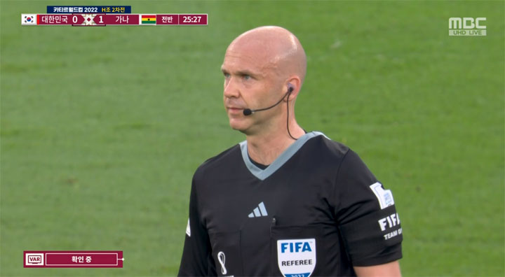 가나전의 주심이 '잉글랜드 프리미어리그'경기 중 손흥민에게 퇴장(레드카드)을 준 심판이라 경기전 우려가 있었다.