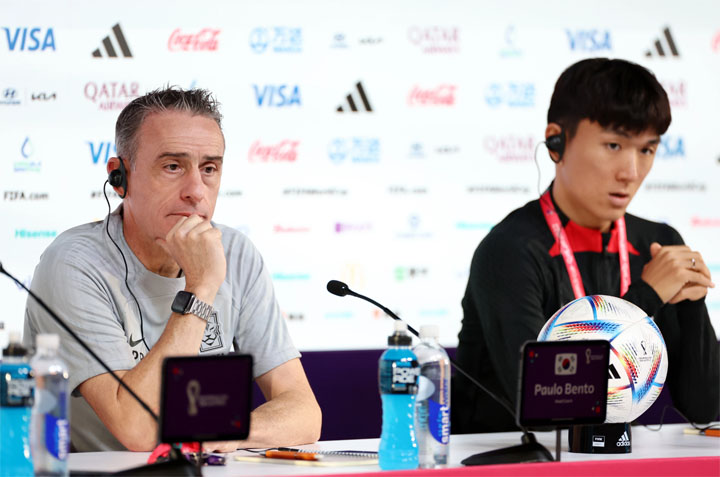 가나전을 앞둔 파울루 벤투 감독은 우루과이 경기 이후 확실히 자신감에 차 있는 파울루 벤투 감독은 한국이 16강 진출에 중요한 경기가 될 가나전을 앞두고 한국이 얼마나 훌륭한 팀인지 보여줄 것이라 말했다.