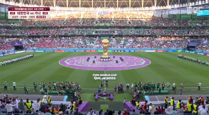 2022년 카타르월드컵이 개막했습니다. 카타르 알코르 알바이트 스타디움에서 열린 2022 카타르월드컵 개막식에는 그룹 방탄소년단(BTS)의 멤버 정국이 개막 공연을 했습니다. 카타르월드컵은 11월