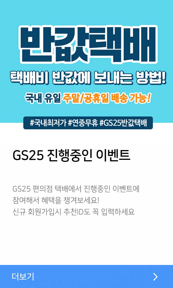 이 외에도 GS편의점 택배에서는 진행중인 이벤트들이 있습니다. 택배비를 반값으로 보낼 수 있는 반값택배 등 소소한 혜택들을 챙겨보세요.