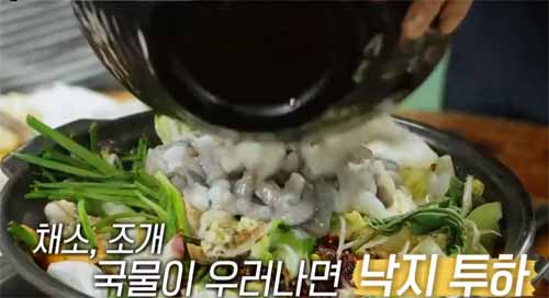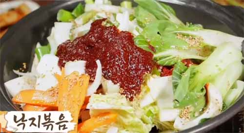 즉석에서 조리해 신선하고 푸짐한 낚지볶음 속에는 조개가 숨어있었다. 보통 낙지볶음 짜글이 식으로 하는데 이 곳은 조개와 채소에서 나오는 국물이 핵심이다.