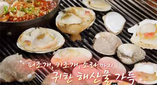 매일 공급받는 신선한 서해 조개 가리비, 웅피(북방대합), 개조개(큰 대합), 대합, 돌조개등을 푸짐하게 내놓았다.