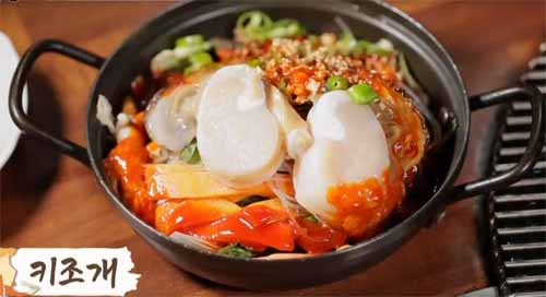 알배추, 청경채, 대파, 양파, 개조개를 넣어 살짝 익힌 뒤, 잘라둔 낙지를 투하해서 먹는 즉석 낙지볶음이다. 오래 볶지 않아 진하지 않은 양념과 조개 육수가 더해져 담백한 맛이 특징이다.