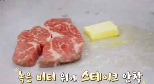 버터를 사용하는 이유는 고기가 좀 더 고소하고, 육즙을 가두는 코팅 역할 때문이라고 한다.