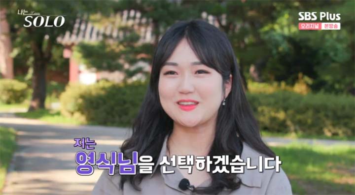 순자는 어깨도 넓고, 운동을 좋아할 것 같은 느낌에 영식님을 선택했다고 한다. 인상도 좋아 보이고 대화를 리드하는 모습에 끌렸다고 한다.