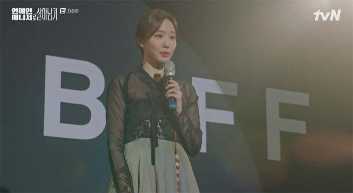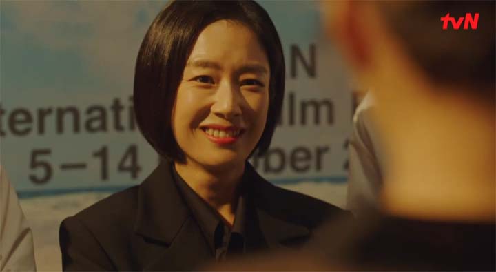 김아중은 무사히 부산 국제 영화제의 MC로 무대에 올라 진행을 이어갔고, 이 모습을 바라보는 제인은 만족스러워한다.