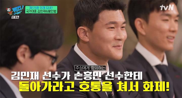 김민재는 골킥 상황에서 심판한데 계속 항의하고 있는 손흥민에게 '빨리가라고 쫌'이라는 말을 하는 장면에 대해서도 해명을 했다.