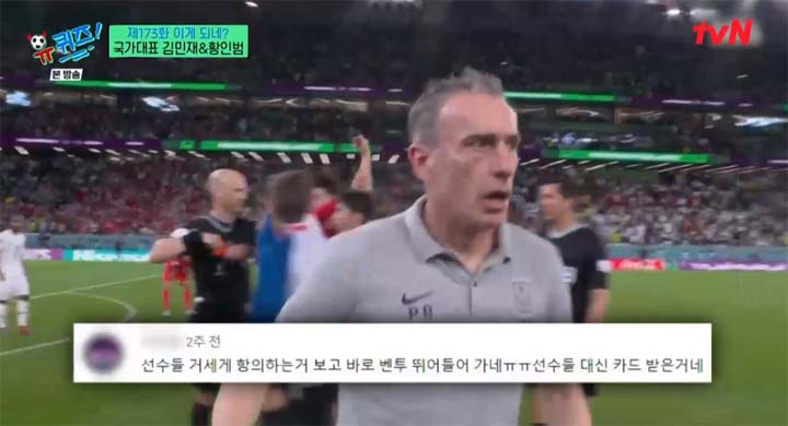 코너킥을 주지 않고 가나 전을 끝낸 선수들의 항의에 벤투 감독이 선수들 퇴장을 막기 위해 대신해 항의했다는 의견도 있었다.